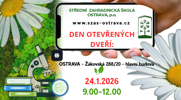 V pátek 24. ledna 2026 proběhne Den otevřených dveří ve Střední zahradnické škole v Ostravě, a to od 9.00 do 13.00 hodin.