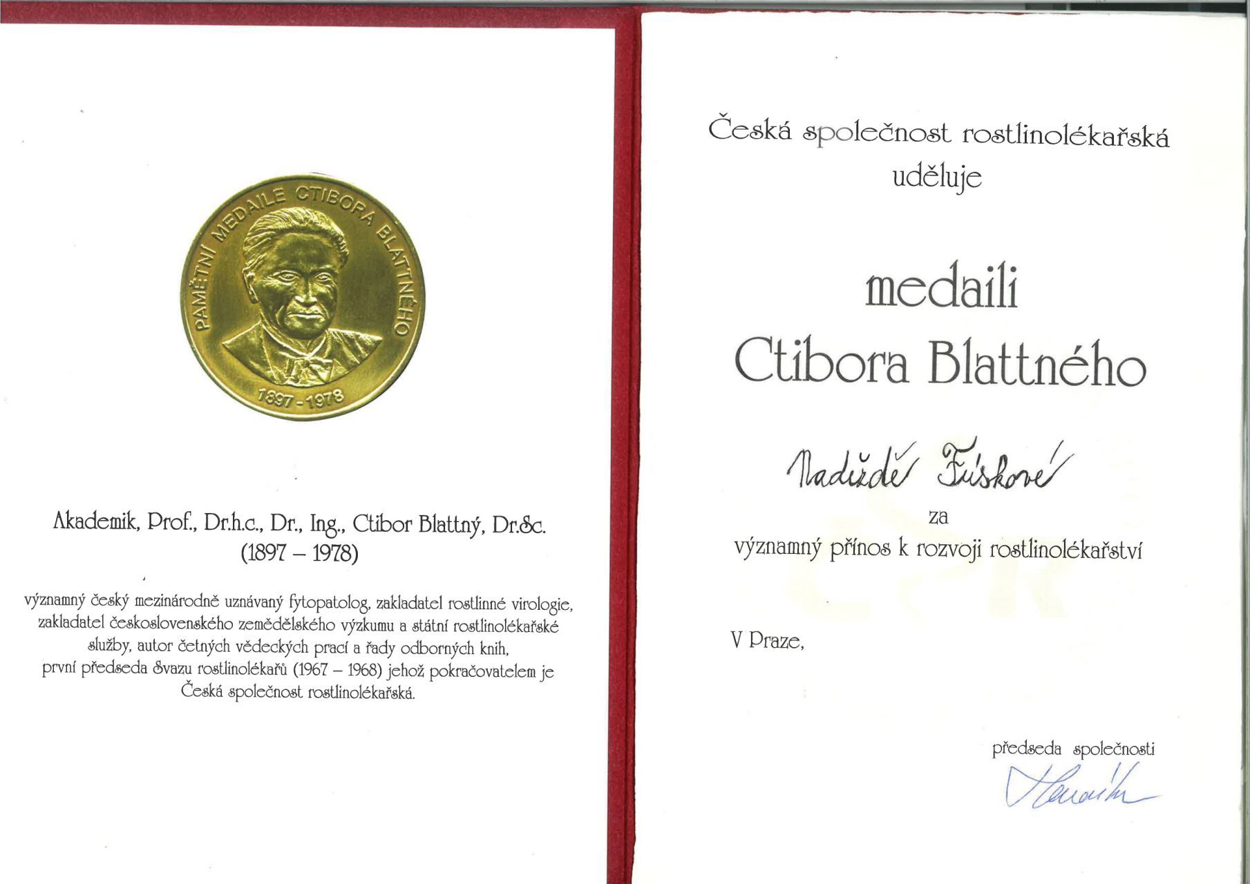 Ing. Naděžda Fúsková získala Medaili profesora Ctibora Blattného
