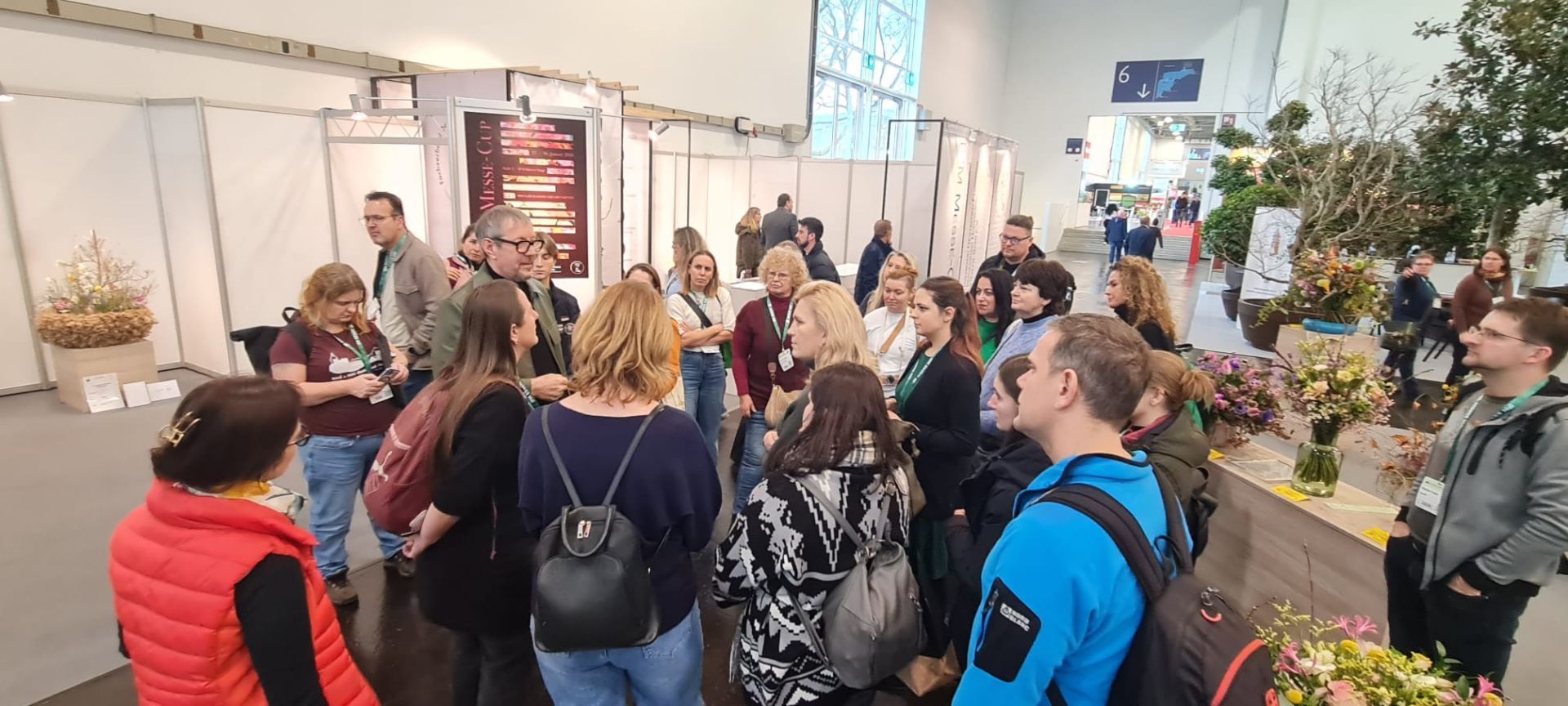 Velkým přínosem programu byla komentovaná prohlídka expozice FDF, kterou vedl Manfred Hoffmann, kreativní ředitel svazu. Během zhruba dvou hodin účastníkům přiblížil fungování německého floristického svazu, představil soutěž, kterou FDF v rámci veletrhu pořádá, vysvětlil její témata i systém hodnocení a seznámil skupinu s partnery svazu a principy jejich výběru.